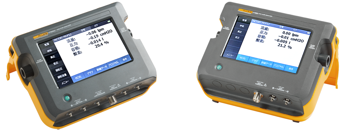 - 超低流量および超低圧ポートでは、麻酔機器やフロー・メーターなどの極めて低流量および低圧のテストが必要な機器に対して使用可能です。(VT900A のみ)